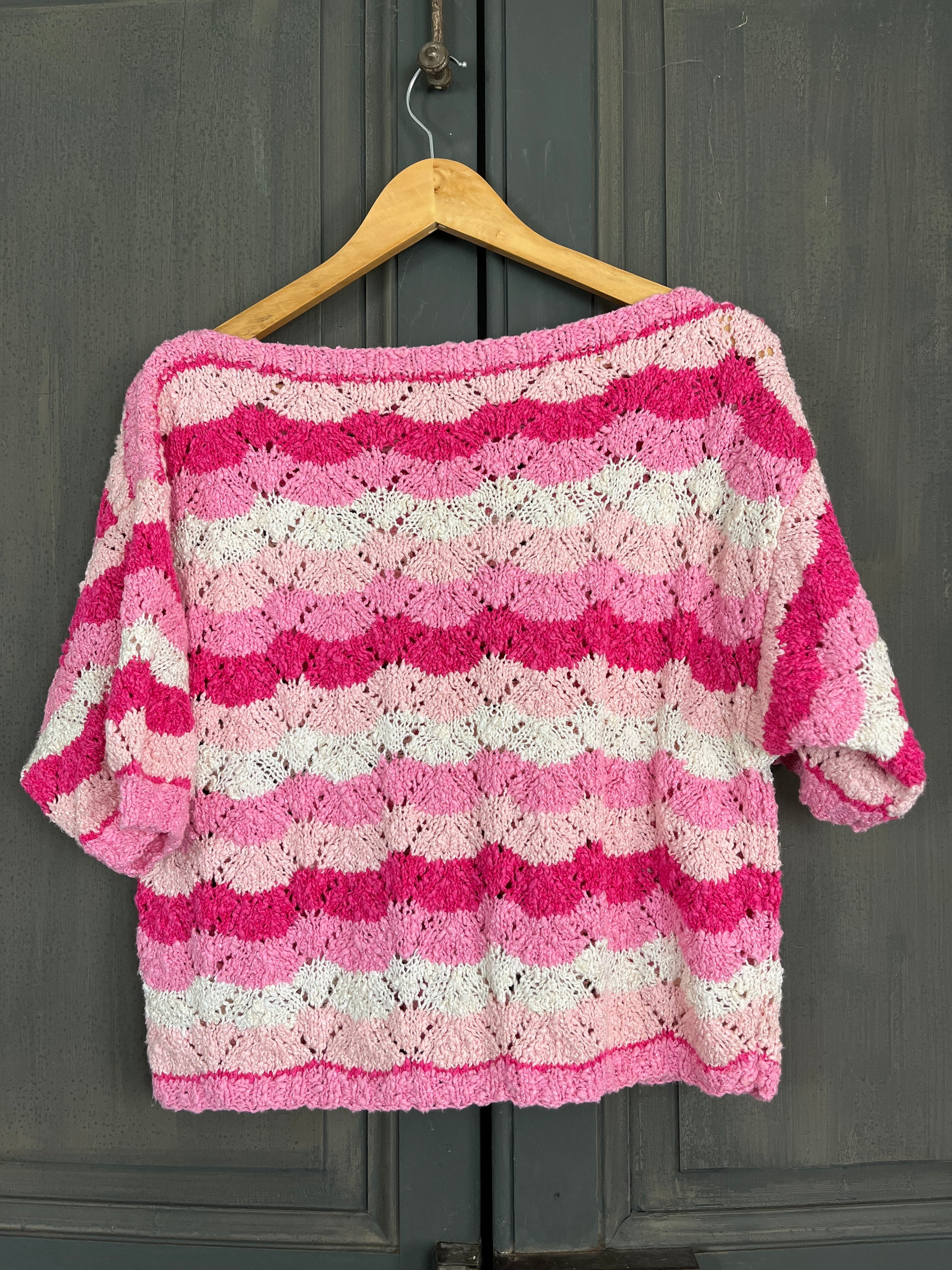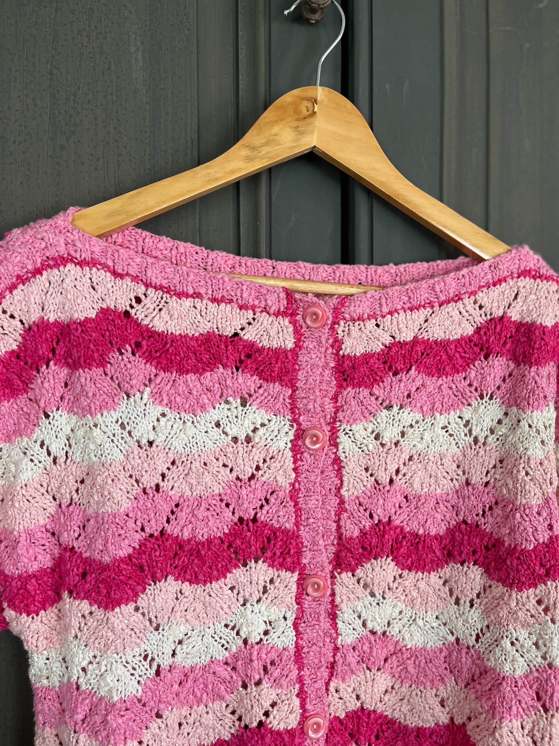 Gilet Tricoté Rétro | Rayures Psychédéliques Roses & Blanches