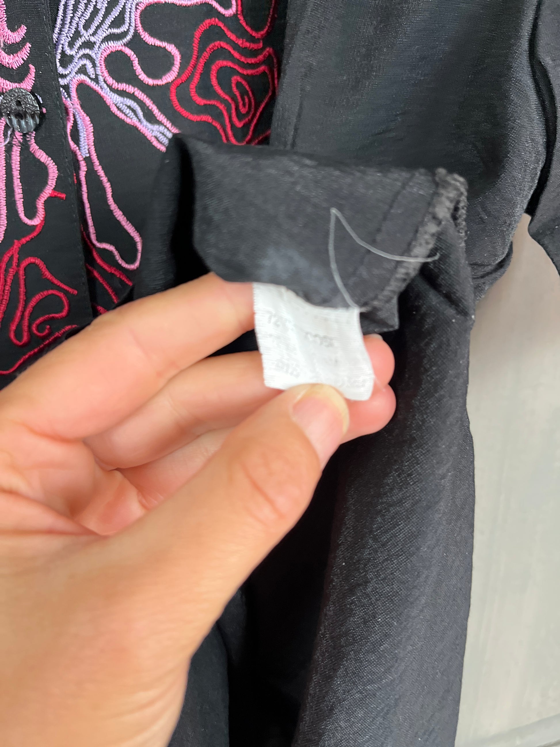 Ajoutez une touche artistique à votre garde-robe avec cette chemise vintage brodée des années 90. Avec son design unique et sa coupe élégante, elle est parfaite pour celles qui apprécient le style retro avec une touche moderne.