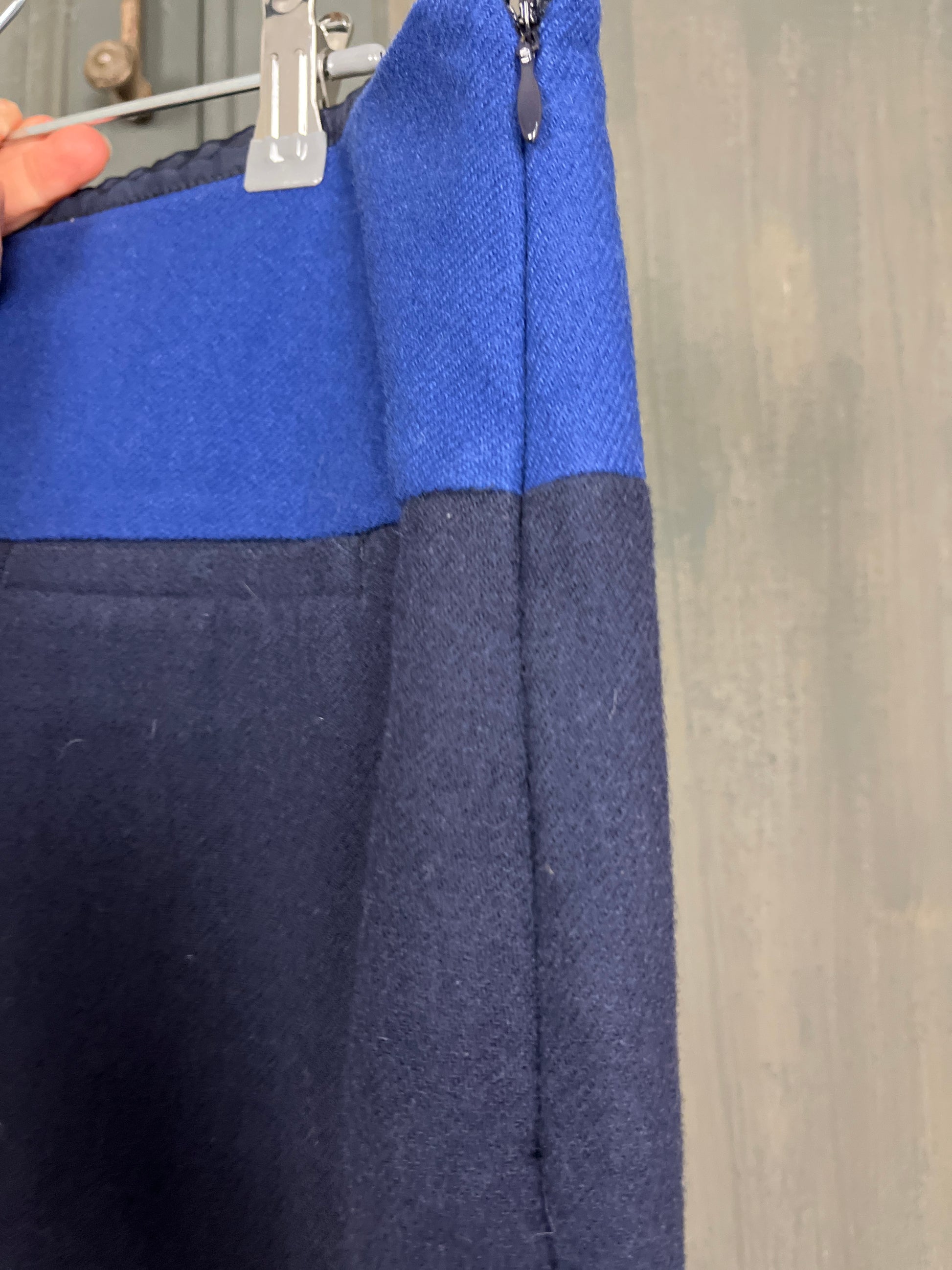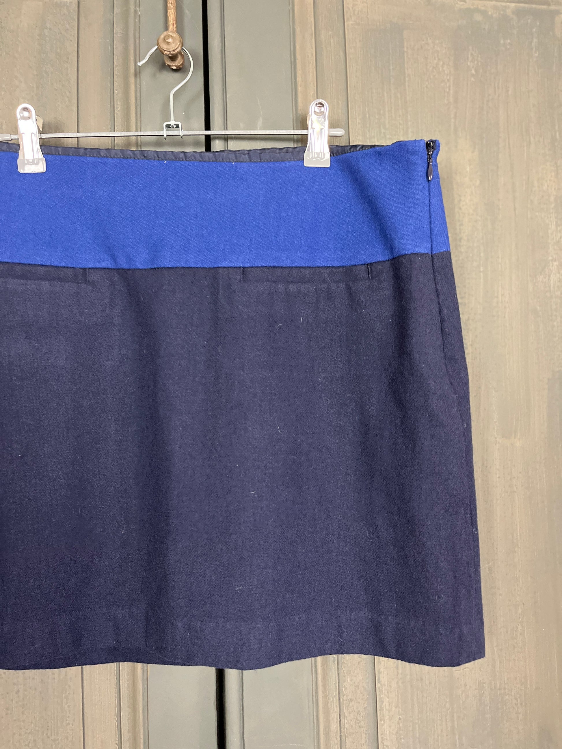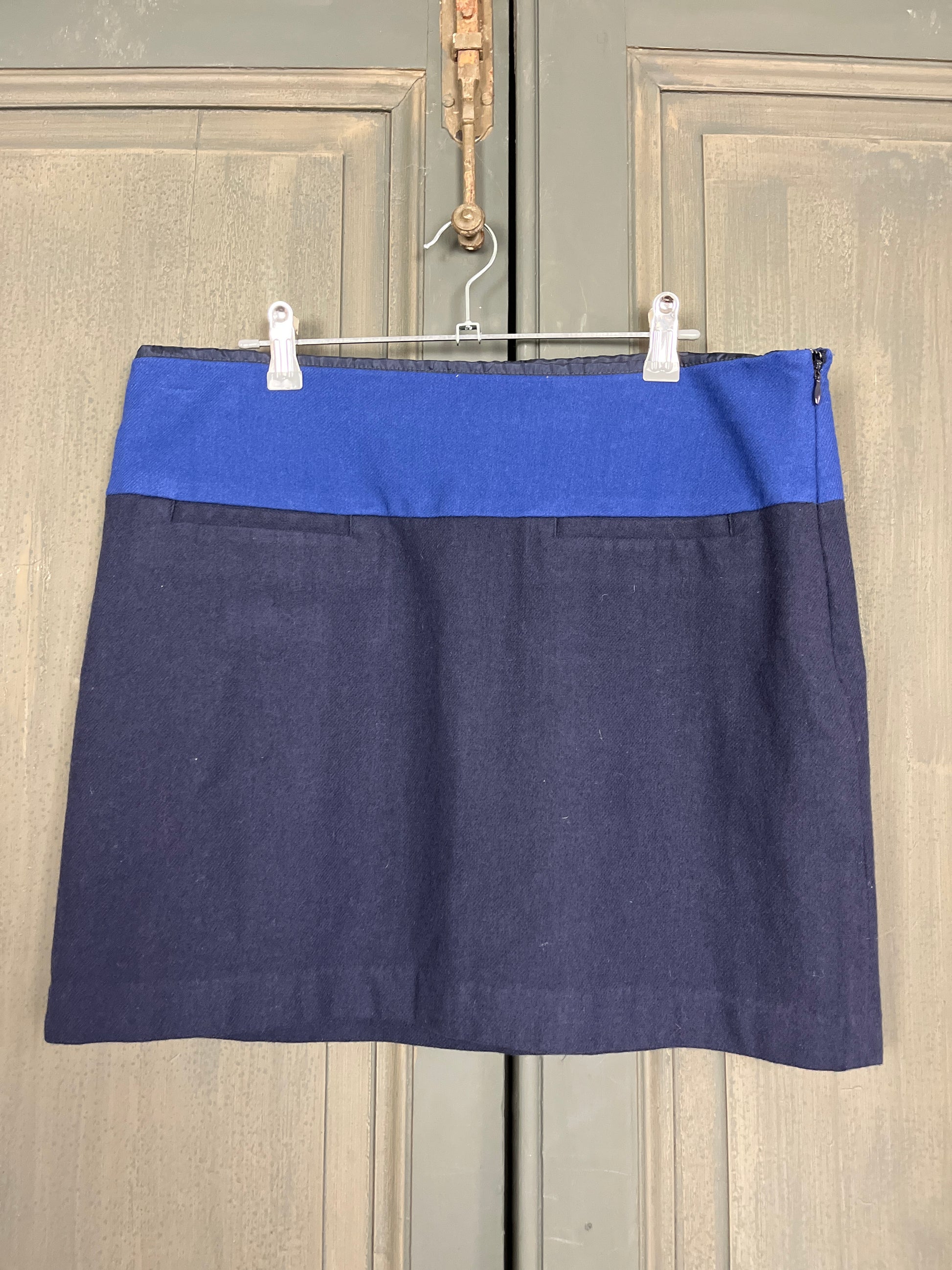 Jupe courte vintage de la marque Gap, authentique des années 90. Son design bicolore bleu marine et bleu roi est très tendance. En matière de type laine, elle est entièrement doublée pour un confort optimal en automne et en hiver. Parfait état, idéale pour un look rétro et stylé !