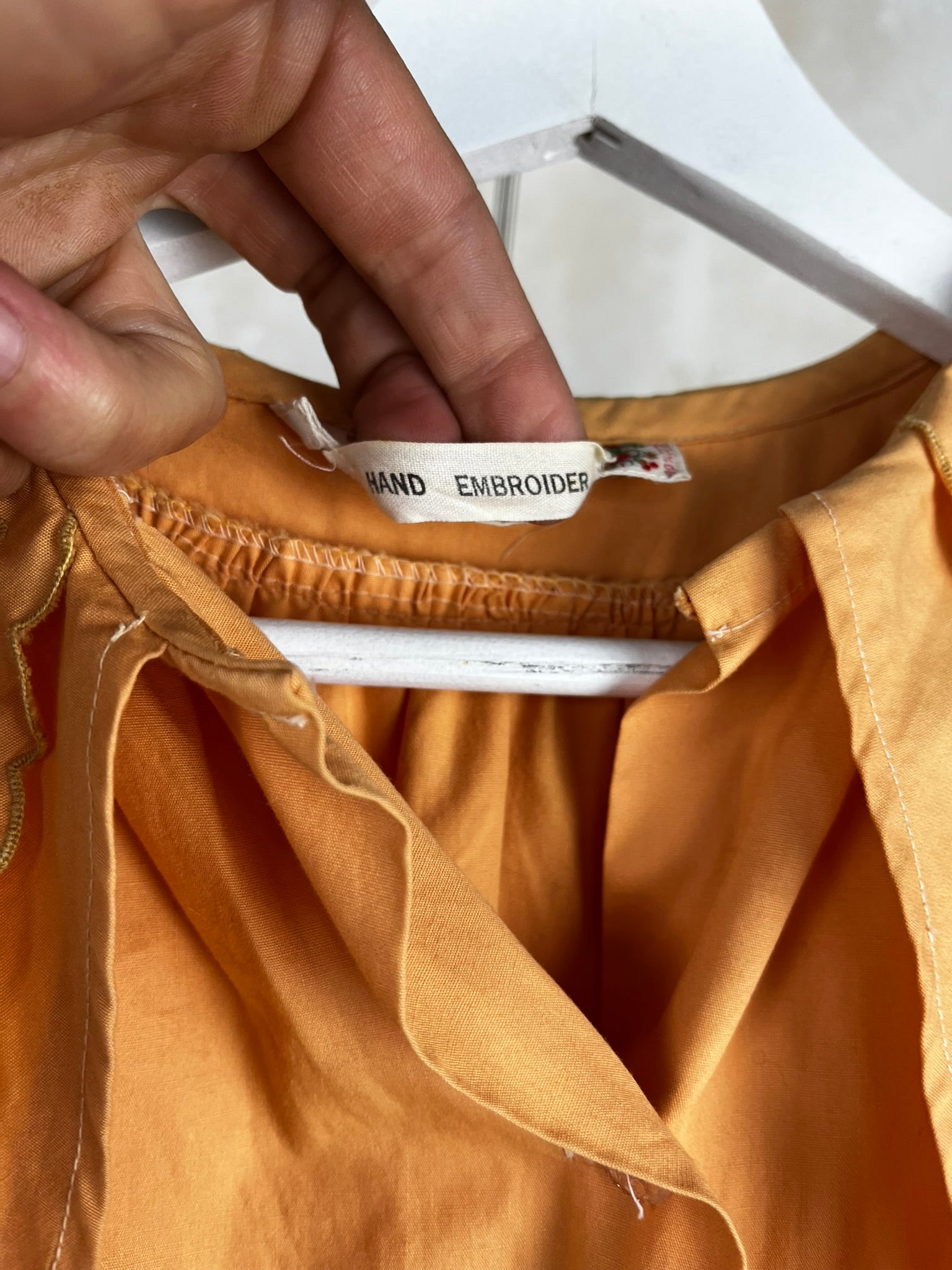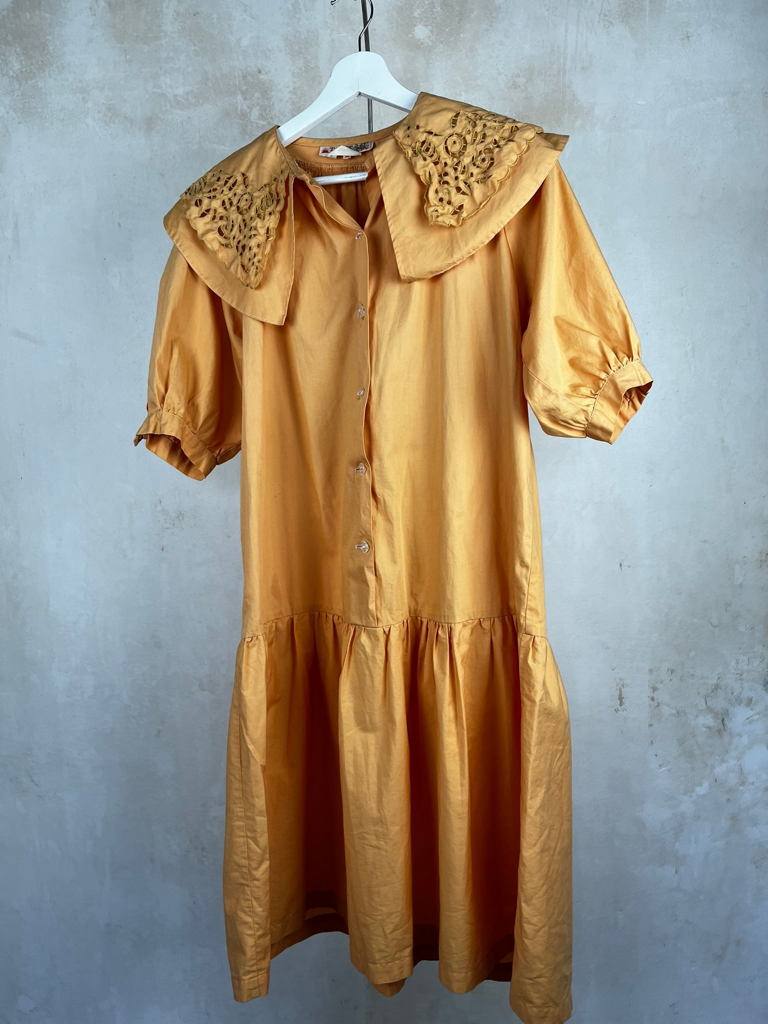 Sublime robe vintage au charme intemporel, parfaite pour adopter un look romantique et bohème ! Sa couleur jaune doré éclatante et son col brodé en font une pièce unique et pleine de caractère.