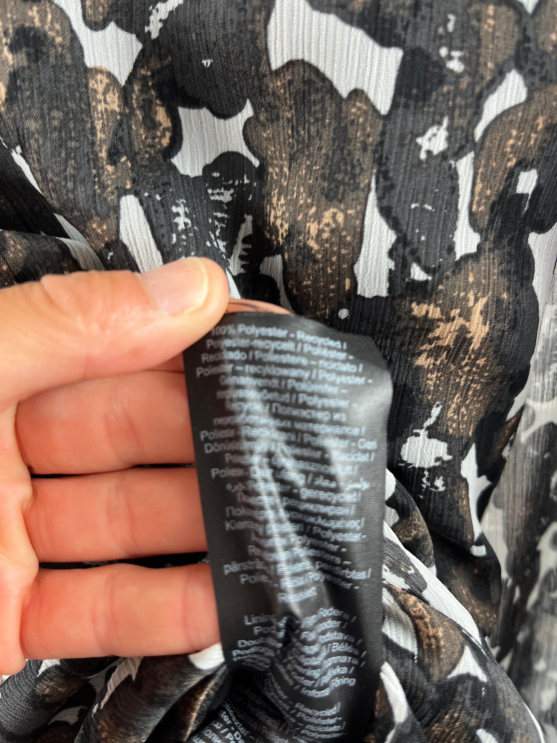 Magnifique robe de la marque AWARE by VERO MODA avec un imprimé abstrait noir et marron. Idéale pour un look élégant et décontracté, elle est parfaite pour toutes les saisons.