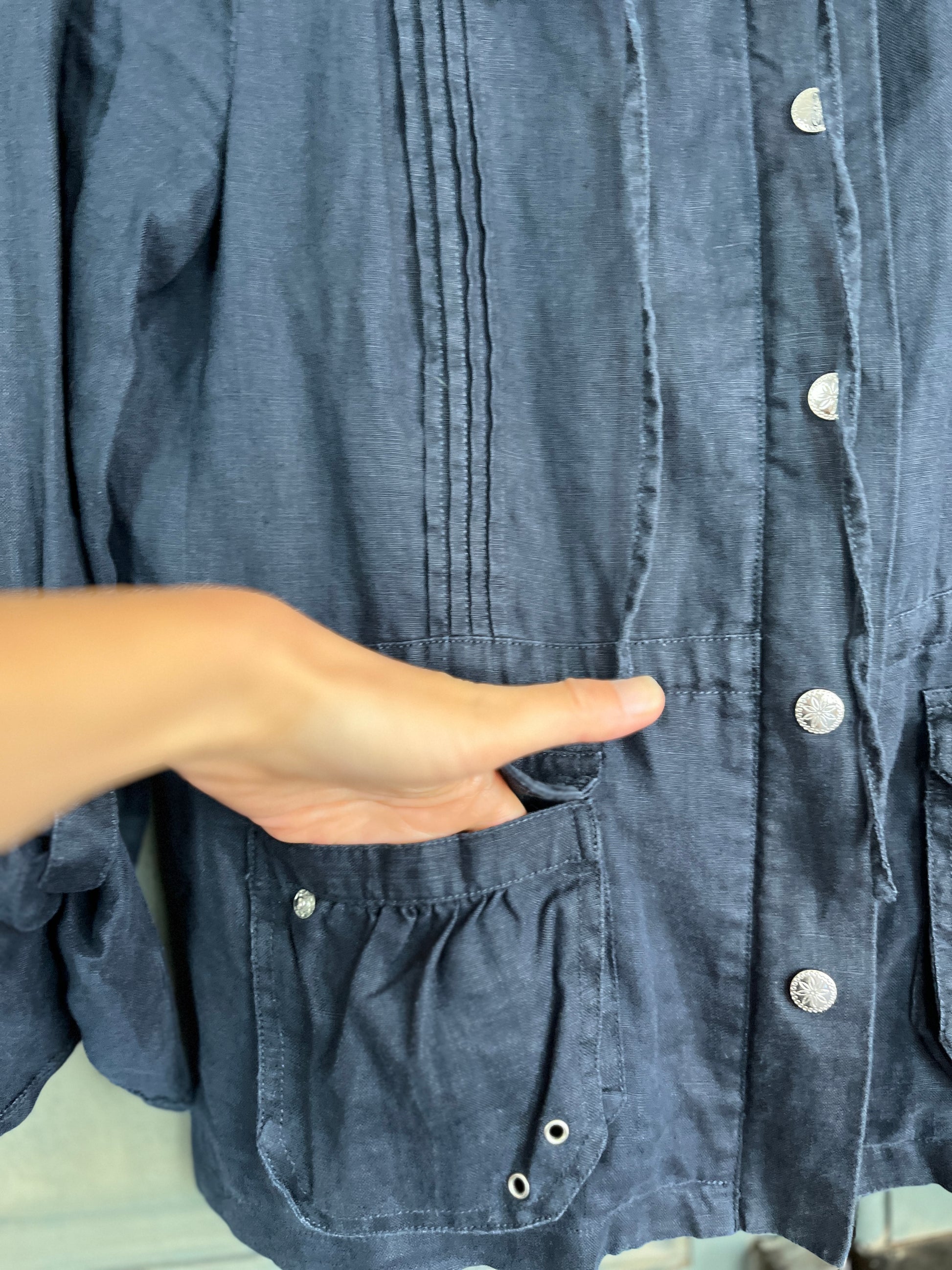 Veste Saharienne Élégante | Lin Léger Bleu Marine